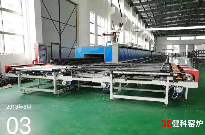 (2)隔焰輥道窯:火焰一般只,進入與窯道隔離的馬弗道中,通過隔焰板將熱量輻射給制品并對其進行加熱。